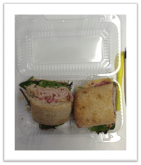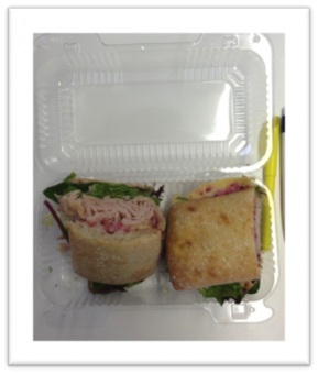Alex & Ben Friday dinner ← Previous Next → Friday: Ben worked late and ordered dinner at the office; a smoked turkey sandwich with Gouda and cranberry horseradish sauce on ciabatta bread.