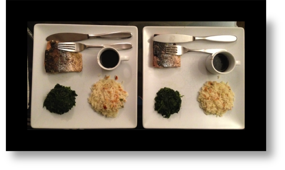 Alex & Ben Sunday dinner ← Previous Next → Sunday: Ben cooked salmon with a balsamic glaze, spinach and rice pilaf. Love the presentation!